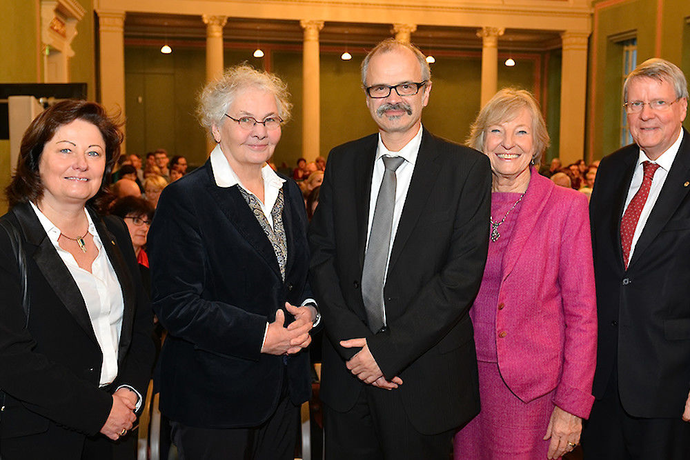 Die Biologin Nüsslein-Volhard erhielt 1995 den Nobelpreis für Medizin für ihre Forschungen über die genetische Kontrolle der frühen Embryonalentwicklung. Die gebürtige Magdeburgerin ist zwar bei Frankfurt am Main aufgewachsen und forscht seit Jahrzehnten am Max-Planck-Institut für Entwicklungsbiologie in Tübingen, aber sie ist auch „tief verwurzelt“ in Sachsen-Anhalt, wie es Dekan Gekle ausdrückte. Insbesondere ihr Großvater Franz Volhard und Urgroßvater Jacob Volhard seien eng mit der halleschen Universität und ihrer Entwicklung verbunden. „Ich habe die Schirmherrschaft gerne angenommen, eben weil ich diese Verbindung zu Halle habe“, sagte Christiane Nüsslein-Volhardt, die Dorothea Erxleben zudem für eine „großartige, beeindruckende Persönlichkeit“ halte, die leider mit 47 Jahren viel zu früh gestorben sei.