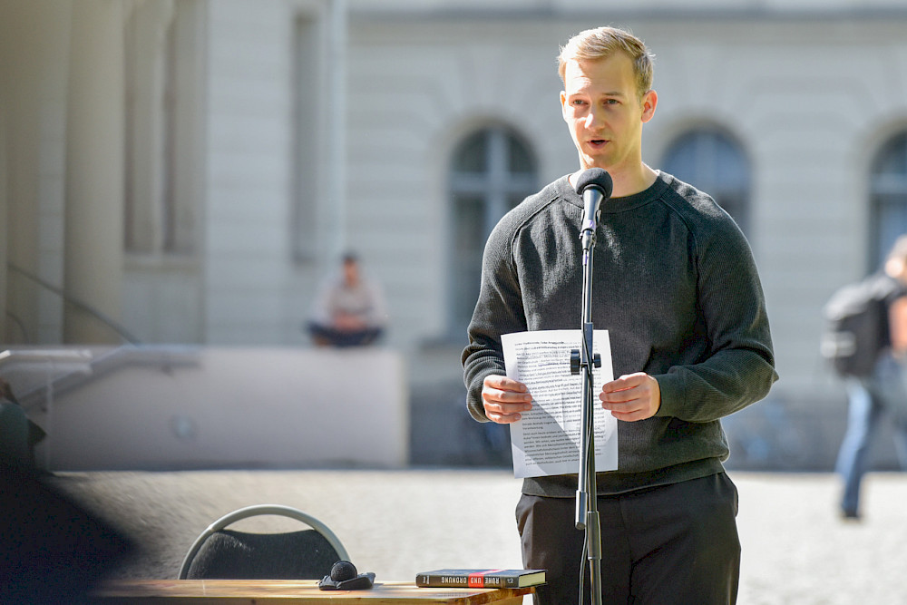 Der Vorsitzende des Studierendenrates der MLU Ferdinand Kirchfeld betonte: „Menschen aus der vermeintlichen Mitte der Gesellschaft waren es damals, die Bücher in Flammen setzten.“ Er rief dazu auf, mutig gegen rechtes Gedankengut aufzustehen.