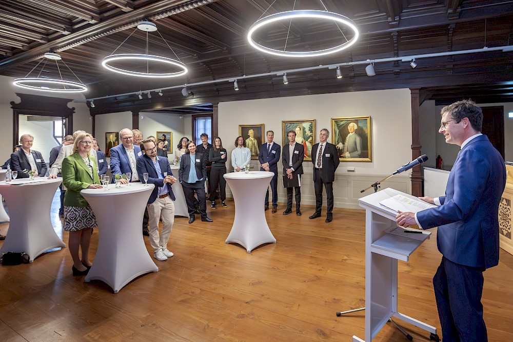 Im Christian-Wolff-Saal des Stadtmuseums begrüßte Halles Oberbürgermeister Dr. Alexander Vogt am Abend die Neuberufenen der drei Hochschulen Halles, neben der MLU die Burg Giebichenstein Kunsthochschule und die Evangelische Hochschule für Kirchenmusik.