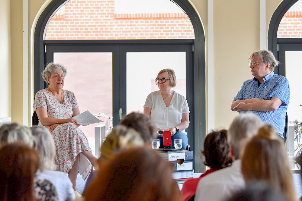 Rund zwei Stunden lang blickten die langjährige Dozentin für französische und italienische Sprachwissenschaft Annette Schiller und der mittlerweile emeritierte Thomas Bremer in einem von der wissenschaftlichen Mitarbeiterin Dr. Anke Auch moderierten Gespräch auf die Entwicklung des heutigen Instituts für Romanistik in der Zeit vor und nach der Wende zurück. Erinnerungen wurden geweckt, Namen bedeutender Romanisten fielen – von Victor Klemperer über Ulrich Ricken bis hin zu Gerda Haßler, die die Romanistik von 1985 bis 1992 leitete. Schiller erinnerte sich zum Beispiel daran, wie Haßler und sie selbst als deren Stellvertreterin die Schülerinnen und Schüler einluden, die sich Ende 1989 auf ein Romanistik-Studium beworben hatten – und sie fragten, was sie denn wirklich studieren wollten. Lehramt Französisch in der Kombination mit Russisch? Das war neben einigen Sprachkursen das einzige Studiengangs-Angebot am Ende der DDR-Zeit. Tatsächlich kamen auch Antworten wie Mathematik und Spanisch oder andere Fächerkombinationen, an die in der DDR nicht zu denken gewesen sei.