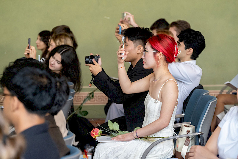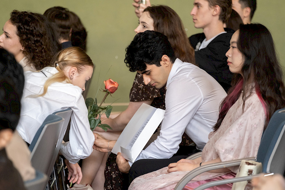 Während der Veranstaltung kamen auch die Lehrkräfte und die Sprecher der verschiedenen Kurse zu Wort, in denen ausländische Bewerberinnen und Bewerber auf ein Studium in Deutschland vorbereitet werden. „Wir haben nicht nur Fachwissen gelernt, sondern auch, wie wichtig Ausdauer, Zusammenarbeit und Vertrauen sind“, sagte Kurssprecherin Mariia Mazur. Ihr Kommilitone Bohdan Kruk sprach über die vielen ersten Male, die es zu bewältigen galt: zum ersten Mal allein in einem anderen Land leben, zum ersten Mal Deutsch sprechen und, und, und. „Das ist nicht immer leicht, aber wir haben durchgehalten."