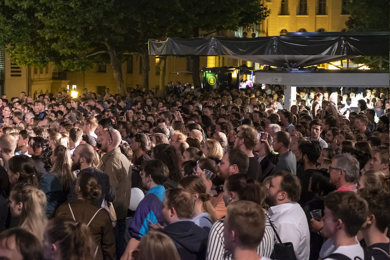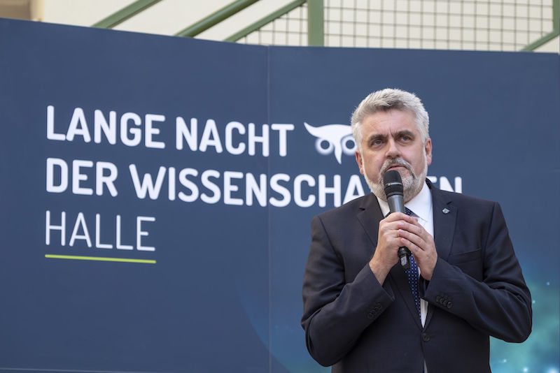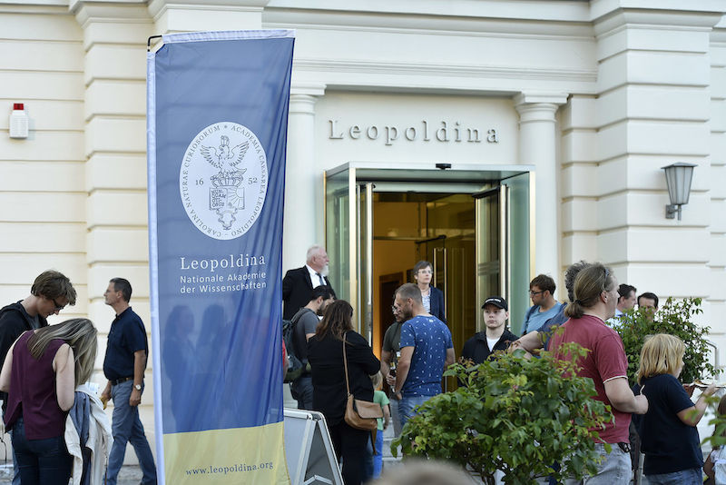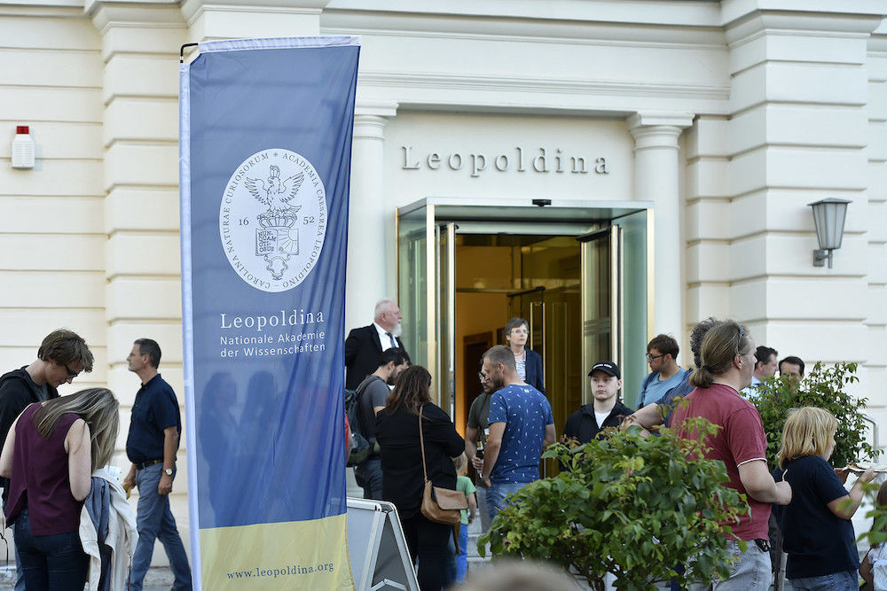 Auch in der Innenstadt tummelten sich zahlreiche Wissenschaftsbegeisterte. Gut besucht war unter anderem die Nationale Akademie der Wissenschaften Leopoldina, die zum Beispiel Filme zur Meeresforschung und ein Puppentheater auf dem Programm hatte. Um 23 Uhr wurden etwa 2.500 Gäste gezählt, die sich das Bühnenprogramm auf dem Universitätsplatz anschauten.