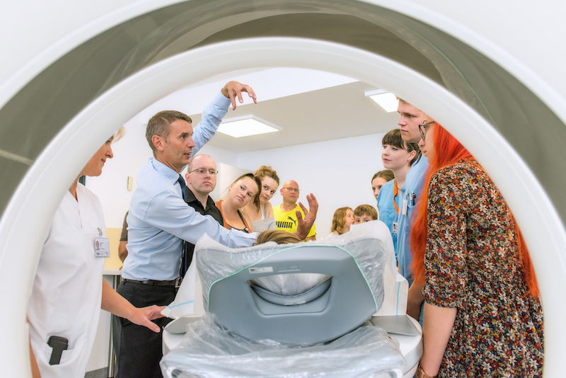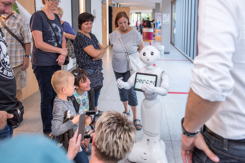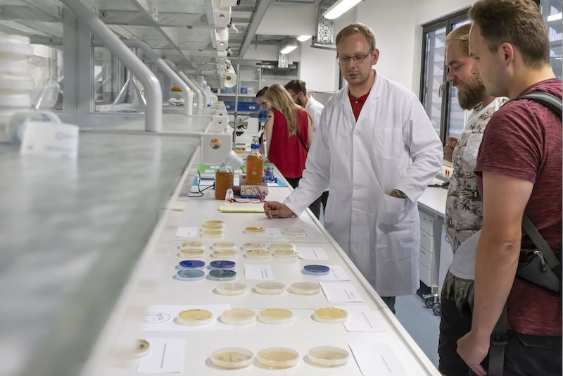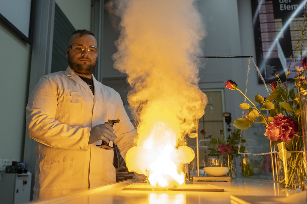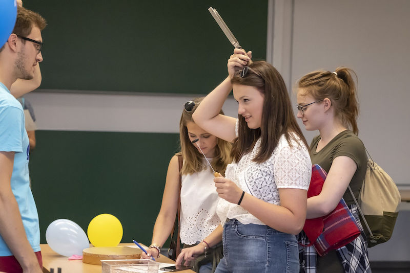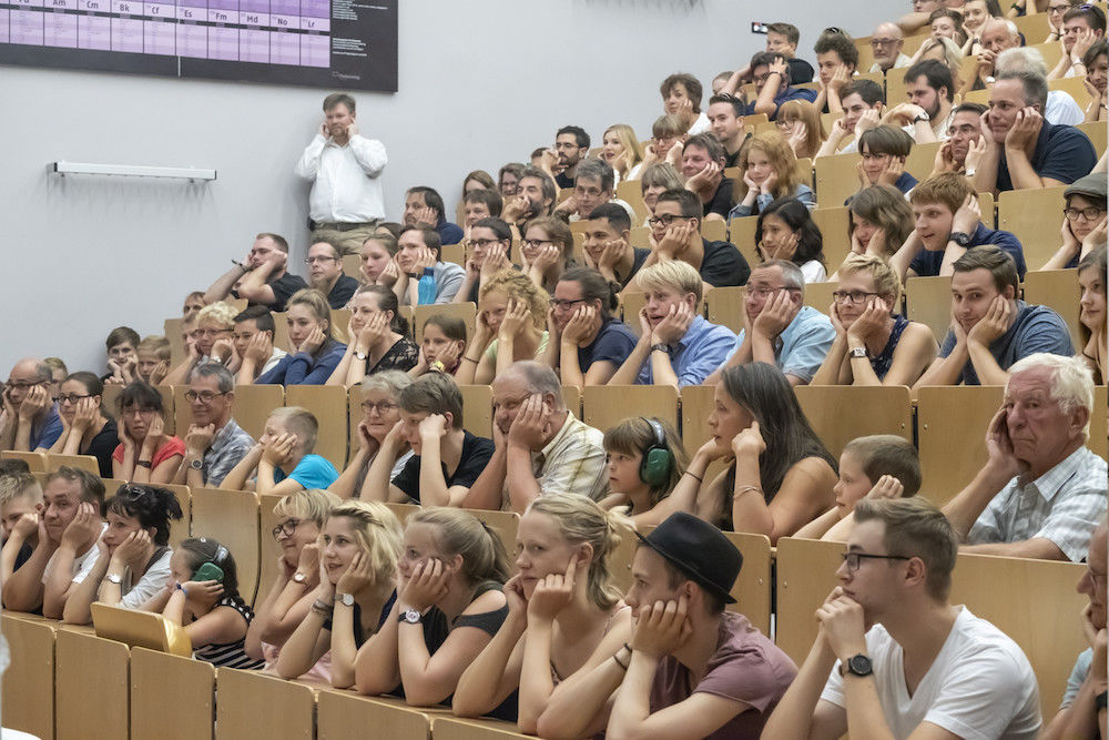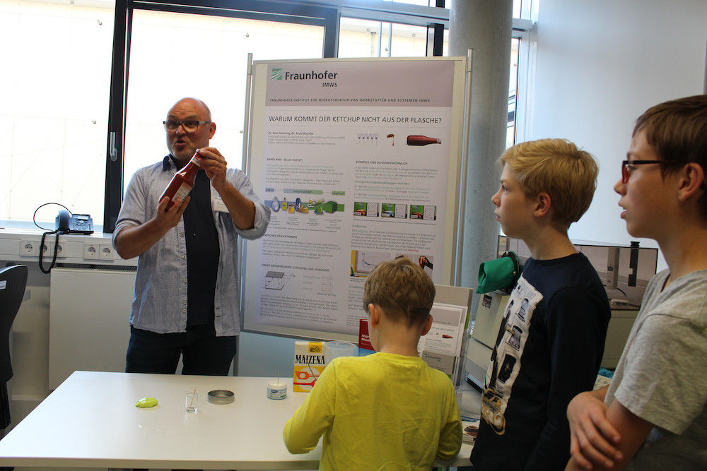 Wissenschaft für alle Sinne gab es zum Beispiel am Weinberg Campus zu erleben. Dort begeisterten die Mitarbeiterinnen und Mitarbeiter der Institute für Chemie und Physik ihr Publikum mit spannenden Experimentalvorlesungen und Versuchen, bei denen es zischte und krachte. Am Fraunhofer-Institut für Mikrostruktur von Werkstoffen und Systemen konnten die Besucher einem modernen 3D-Drucker bei der Arbeit zuschauen. Und auch das Universitätsklinikum hatte wieder ein umfangreiches Programm organisiert, das zahlreiche Neugierige lockte.