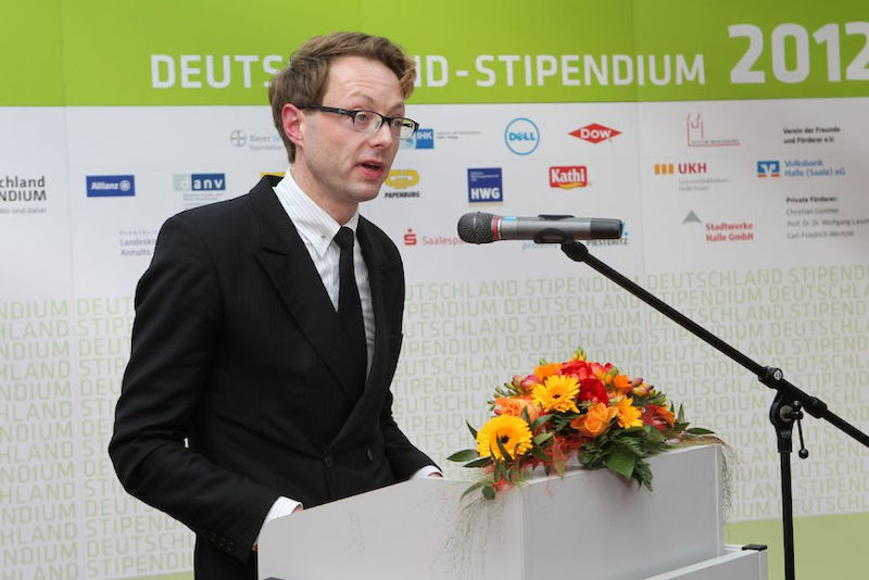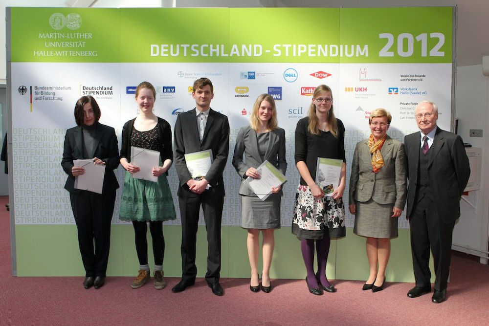 Die neuen Stipendiaten haben am 19. April auf einer Festveranstaltung ihre Stipendienurkunden erhalten. Die Festrede dabei hielt Timo V. Schmitt-Lord, Geschäftsführender Vorstand der Bayer-Stiftungen, die fünf Stipendien co-finanzieren. Weitere fünf der neuen Stipendien werden von der Vereinigung der Freunde und Förderer der MLU (VFF) co-finanziert. Auch die IHK Halle-Dessau, die DELL Halle GmbH, das Bistum Magdeburg und die Dow Olefinverbund GmbH zählen nun zu den Förderern.