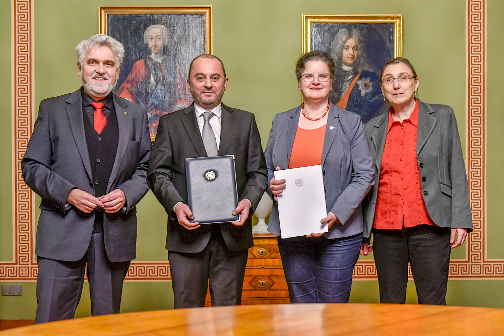 Damit kommen der Arbeitsstelle, der MLU und auch dem Land Sachsen-Anhalt eine besondere Verantwortung zu, wie auch Wissenschaftsminister Prof. Dr. Armin Willingmann bei seinem Grußwort betonte. „Wir sind uns dieser besonderen Rolle bewusst“, so der Minister. Die Arbeit von MESROP sei eine Erfolgsgeschichte, deren Entwicklung im Gründungsjahr 1998 nicht vorhersehbar gewesen sei. Damals hatte der Theologe Prof. Dr. Hermann Goltz von der MLU MESROP als Zentrum für Armenische Studien an der Stiftung Leucorea gegründet, seit 2006 ist MESROP an die MLU angegliedert. Von 2010 bis 2022 übernahm Prof. Dr. Armenuhi Drost-Abgarjan die Leitung.