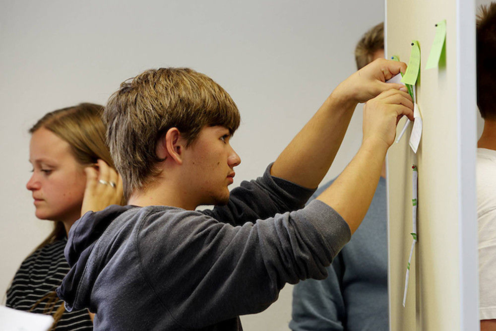 Außerdem konnten die Schülerinnen und Schüler im Workshop selbst erfahren, was es heißt, sich forschend Gedanken über die Zukunft zu machen. Die dort verwendete Methode, das „Design Thinking“, bietet der Gründerservice auch in Workshops für Wissenschaftlerinnen und Wissenschaftler, Studierende und Lehrende an. Der Ansatz basiert darauf, Ideen anhand eines konkreten Bedarfs zu entwickeln, sodass das Ergebnis dann auch tatsächlich von Nutzen für den Verbraucher ist.