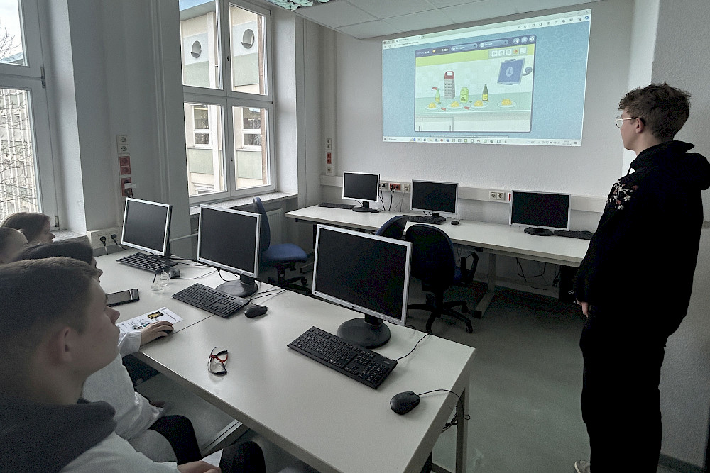 „Zitrusfrüchte“, „Team CO₂“, „Chemieamateure“ und „Der verätzte Kebab“: In vier Mannschaften sind die Achtklässler bei dem besonderen Wettbewerb an der MLU angetreten. Entwickelt wurde das Konzept der „Acid Games“ von den Lehramtsstudierenden Lea-Sophie Schmidt, Anna Glowinski, Nico Semmler und Justus Schreiber. Hintergrund sei der Auftrag der Kultusministerkonferenz, nach dem Schülerinnen und Schüler auch im Fachunterricht digitale Kompetenzen erlernen sollen, sagte Dr. Claudia Ehrhardt, wissenschaftliche Mitarbeiterin in der Arbeitsgruppe „Didaktik der Chemie“. Darüber hinaus seien die „Acid-Games“ ein Beispiel für eine praxisnahe Lehramtsausbildung – schließlich sollten die Studierenden den Unterricht nicht nur selbst entwickeln, sondern auch halten.