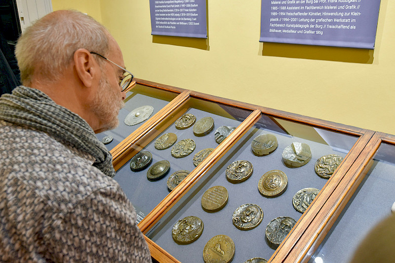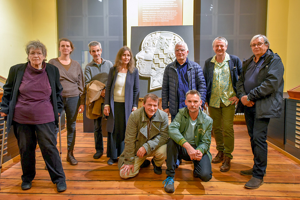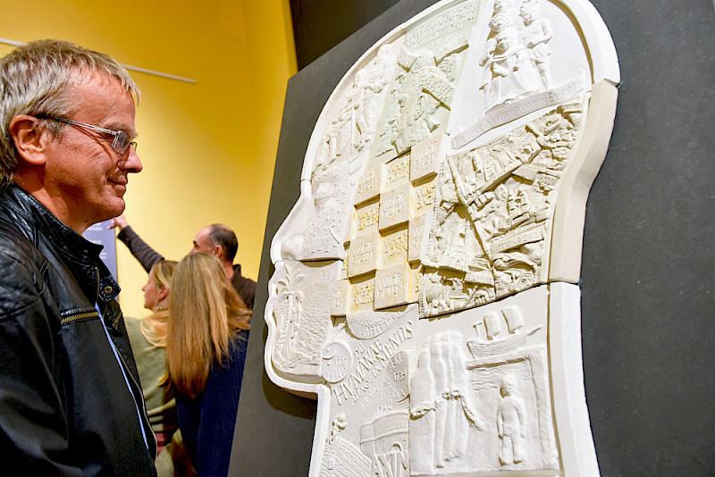 Unter den Gästen waren auch die neun halleschen Künstlerinnen und Künstler Steffen Ahrens, Rossen Andreev, Grit Berkner, Bernd Göbel, Katharina Günther, Georg Mann, Martin Roedel, Carsten Theumer und Heidi Wagner-Kerkhof. Die anhaltende Debatte um eine zeitgemäße Erinnerung an Anton Wilhelm Amo und der Fakt, dass von ihm keine bildliche Überlieferung bekannt ist, motivierten sie, sich mit dem bedeutenden Philosophen und Alumnus der MLU auseinanderzusetzen. Entstanden ist dabei gemeinsames Werk, das sich dem Menschen und seinem Leben annähert. Das Gipsmodell „Anton Wilhelm Amo“ ist im Kupferstichkabinett im Löwengebäude zu sehen.