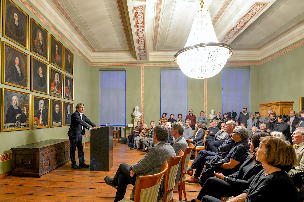 Gründe dafür, dieses besondere Werk an der Universität zu zeigen, gibt es viele: „Die zentrale Kustodie versteht sich als Schaufenster der Universität und als Begegnungsort von Uni und Stadtgesellschaft. So wird auch die Diskussion um ein zeitgemäßes Erinnern an Amo nicht nur in der MLU, sondern auch in der Stadtgesellschaft geführt“, sagte Dr. Dirk Schaal, Kustos der MLU, bei der Vernissage.