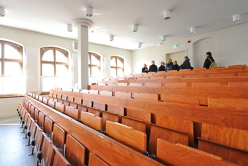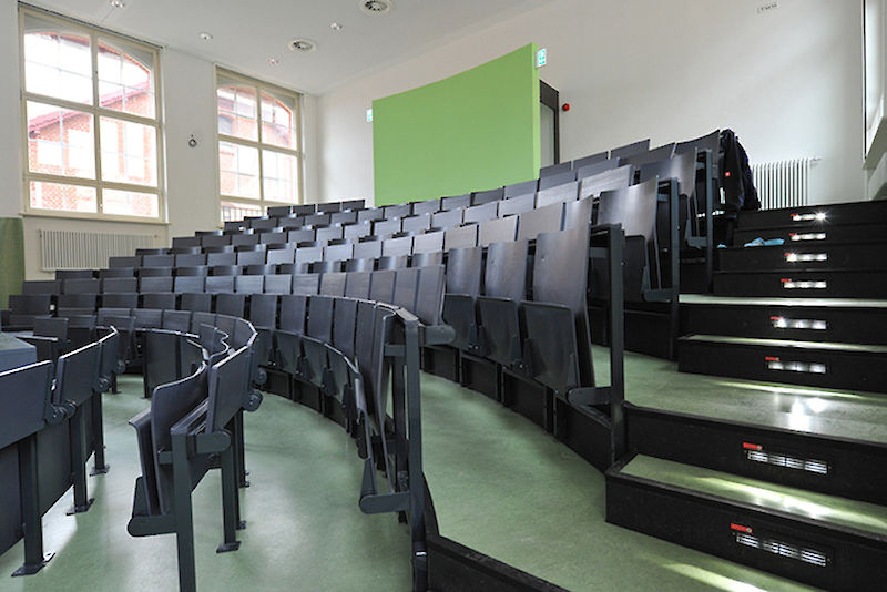 Akustiker hörten zum Beispiel im sanierten Altbau in der Adam-Kuckhoff-Straße 35 ganz genau hin. Mit ihrer Hilfe wurde die sogenannte Vorführhalle, ein hoher, heller Raum besonders schalldämmend gestaltet, so dass er nicht nur für die Lehre optimale Bedingung bietet, sondern auch als Aufführungsort der Sprechwissenschaftler genutzt werden kann.