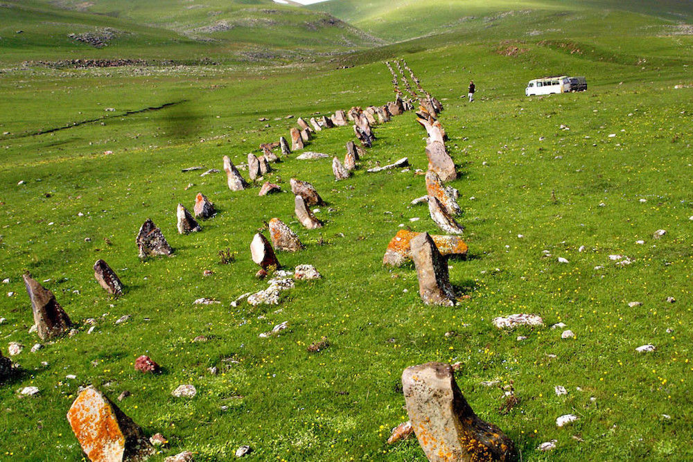 Im Norden Armeniens, in einem eiszeitlichen Erosionstal nahe der Stadt Hartashen ragen sie empor: zwei mehrere hundert Meter lange Steinreihen, bestehend jeweils aus drei parallel nebeneinander verlaufenden Einzelreihen. Daneben finden sich am Fuße eines 3000 Meter hohen Bergmassivs auch immer wieder verschiedene kreisförmige und lineare Steinanhäufungen. Allesamt bisher weder dokumentiert, datiert oder in ihrer Funktion untersucht.