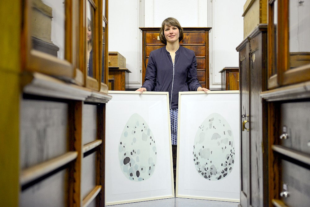 Die Auseinandersetzung mit der weltweit angesehenen oologischen Sammlung von Max Schönwetter ist für von Hellermann aus zahlreichen Perspektiven spannend. Zum einen fasziniert die Künstlerin die Einzigartigkeit jedes Eis, die in der Sammlung durch das Vorhandensein mehrere Eier gleicher Vogelarten deutlich hervorgehoben wird. Zum anderen reizt sie auch die Tatsache, dass die Eier innerhalb des ZNS für die Öffentlichkeit meist unzugänglich sind – denn bei Tageslicht verblassen die seltenen Exponate.