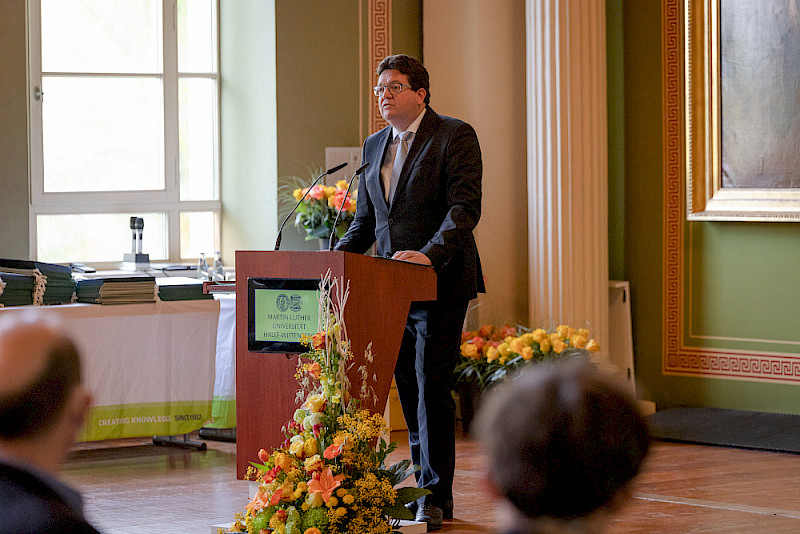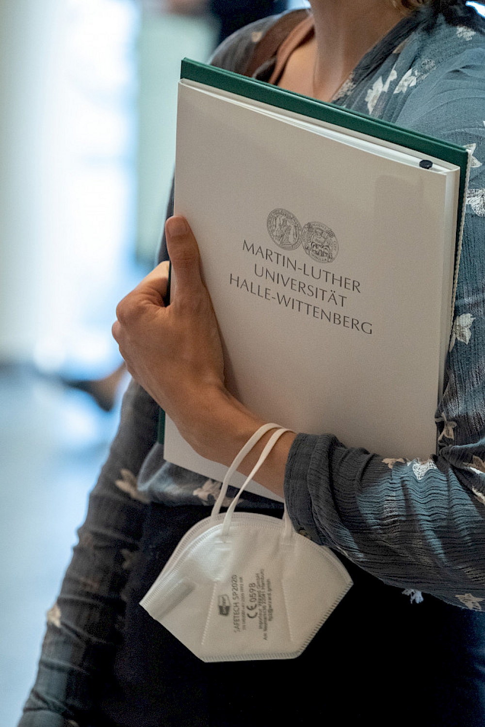 Seit dem Sommersemester 2019 wurden 775 Promotionen und 25 Habilitationen an der MLU abgeschlossen. „Das ist ein beeindruckender Ausweis unserer Leistungsfähigkeit als Martin-Luther-Universität“, sagte Rektor Prof. Dr. Christian Tietje am Freitag auf der Festveranstaltung. „Wir freuen uns außerordentlich, dass wir wieder eine feierliche Urkundenübergabe in unserer wunderschönen Aula vollziehen können“, so Tietje - wegen Corona war das zwei Jahre lang nicht möglich. Die Festrede hielt mit der Psychologin Dr. Annegret Wolf eine Wissenschaftlerin, die selbst zu den Albsolventinnen und damit den Geehrten des Abends gehörte. „Wir haben es geschafft!“, sagte sie zum Auftakt ihres Vortrages unter dem Titel "Fight or Flight - Die Macht der Emotionen in unserem Alltag". Die Festveranstaltung, so Wolf, bilde für die Absolventinnen und Absolventen den offiziellen Abschluss einer hochemotionalen Zeit. Wolfs Vortrag war laut Rektor Tietje auch ein Beitrag der Universität zum Themenjahr der Stadt Halle, das sich aktuell mit der Macht der Emotionen befasst.