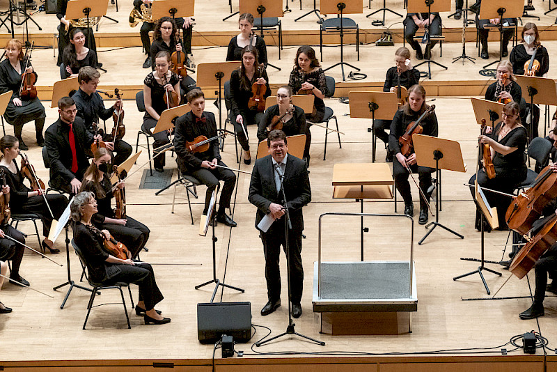 Im Anschluss an die Festveranstaltung fanden in der Händel-Halle ein Empfang und das Große Frühjahrskonzert mit dem Akademischen Orchester, dem Universitätschor "Johann Friedrich Reichardt" und der Uni-Bigband statt.