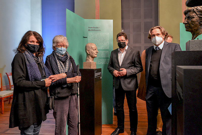 „Wir wollen Verborgenes sichtbar machen“, sagte Kustos Dr. Dirk Schaal zur Vernissage. Über 90 Werke der jüdischen Bildhauerin existieren nachweislich, 16 davon befinden sich im Besitz der Universität, zwölf weitere in dem des Kunstmuseums Moritzburg. Bis auf wenige Ausnahmen sei das Werk Grete Buddes in der Öffentlichkeit nicht präsent. Das ändert sich mit der ab heute geöffneten Ausstellung „Grete Budde - Werke für die Universität“ – der ersten Einzelausstellung mit Plastiken der Künstlerin. Sie ist Teil des Festjahres „1.700 Jahre jüdisches Leben in Deutschland“.