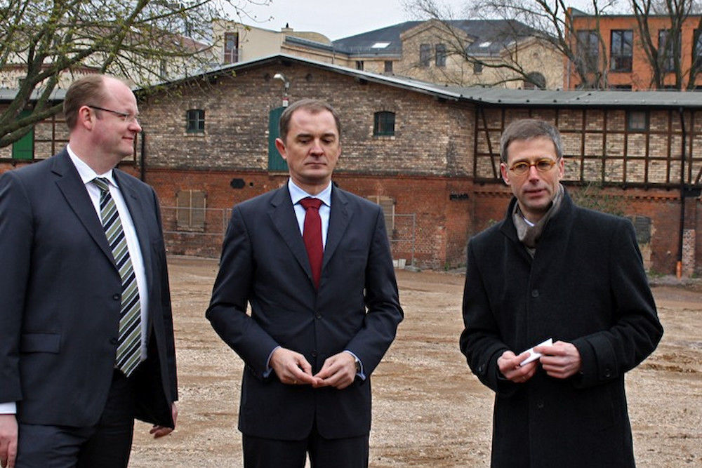 Gemeinsam mit den beiden Staatssekretären Jörg Felgner (SPD) und Marco Tullner (CDU), Vertretern der Stadt und der MLU besichtigte er die Baustelle an der Emil-Abderhalden-Straße, an der die Neubauten für die Philosophischen Fakultäten I und II entstehen. Nach Ostern werden auch die Arbeiten an dem geplanten Bibliotheksneubau beginnen, dann wird an allen Baubereichen parallel gearbeitet.