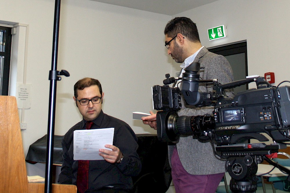 Journalist und Musikpädagoge kennen sich schon lange. Jetzt, da Azadehs Doktorarbeit mit einem Magna cum laude ausgezeichnet wurde, sollen die Forschungsergebnisse in den persischen Nachrichten gezeigt werden. Drei bis vier Minuten wird der Beitrag dauern, gedreht in Uni, Händelhaus und Musikinstitut – ausgestrahlt in zwei, drei Wochen.
