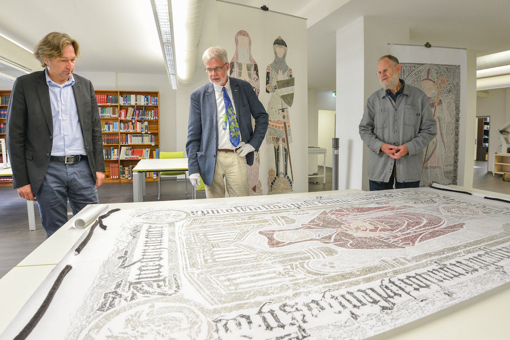 Es sind zum einen seine Lieblingsstücke, zum anderen Abriebe von den Platten wettinischer Grabmäler, die Reinhard Lamp jetzt ebenfalls dem Universitätsarchiv zur Verfügung gestellt hat. Aus Sorge darum, was mit ihren Sammlungen nach ihrem Tod geschieht, und um diese langfristig der Forschung und Lehre zur Verfügung zu stellen, hatten er und der Brite Kevin Herring sich bereits vor Jahren zu einer Schenkung an die Universität entschlossen – im Juni 2018 kamen beide dazu nach Halle, um den Großteil ihrer in Jahrzehnten entstandenen Werke zu übergeben. Mit den nun hinzugekommenen Abrieben umfasst die Sammlung in Halle rund 600 Stücke.