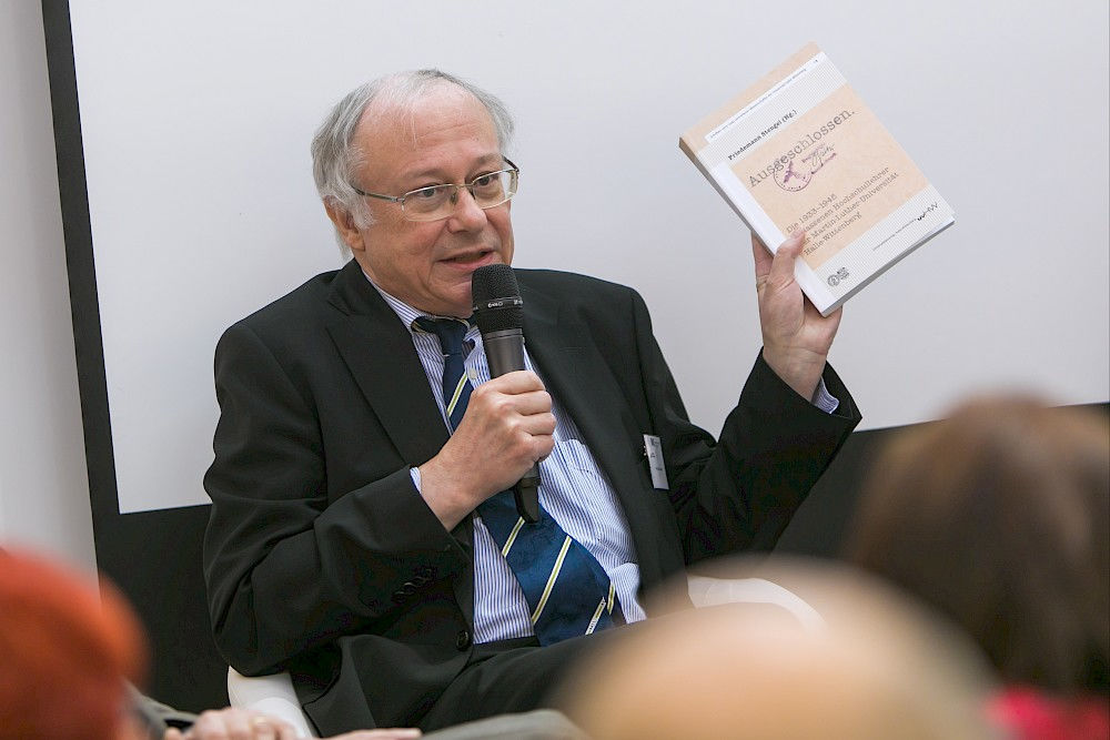 Auch Udo Sträter hatte ein für ihn wichtiges Buch gewählt, das mittlerweile in der zweiten Auflage erschienen ist. In „Ausgeschlossen“, herausgegeben von PD Dr. Friedemann Stengel, sind 43 Biografien der Hochschullehrer zusammengetragen, die von den Nationalsozialisten 1933 aus der Universität Halle entfernt wurden, weil sie politisch nicht passten, Juden waren oder schwul. „Es gehört für eine Universität dazu, dass man sich auch mit den Seiten befasst, die dunkel sind, und damit, was passiert, wenn die Weltoffenheit abhandenkommt“, so Sträter.