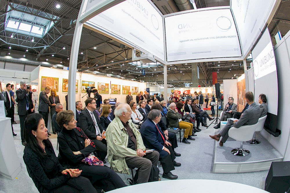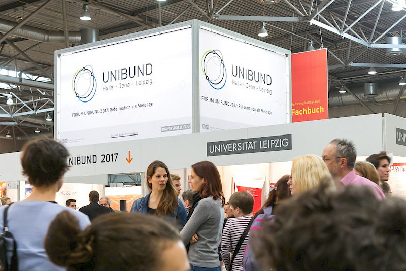 Noch bis zum Sonntag stellen Wissenschaftler und Studierende der drei Universitäten sowie der Hochschule Merseburg unter dem Motto „Forum Unibund 2017: Reformation als Message“ in Vorträgen und Podiumsdiskussionen Forschungsprojekte und -ergebnisse rund um das Thema Reformation vor. Das Forum befindet sich am gemeinsamen Stand des Unibunds (G 200) in Halle 3. Das komplette Programm unter: http://www.leipziger-buchmesse.de/ll/veranstaltungen/26145