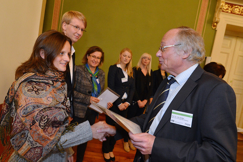 Zusätzlich fördert die Universität den Kontakt unter den Deutschlandstipendiaten durch sogenannte Netzwerktreffen, die interessierte Stipendiaten schon zur Werkführung der SKW Stickstoffwerke Piesteritz – ebenfalls ein Stipendiengeber – nach Wittenberg führten. Ein andermal informierte ein Stifter darüber, wie man Gehaltsverhandlungen führt. „Solche Angebote bringen einen auch in der persönlichen Entwicklung weiter“, sagt Schramm. Als 2015 ihr Jahr als Deutschlandstipendiatin enden sollte, bewarb sie sich erneut um eine Förderung. Und es hat wieder geklappt: Seit Oktober 2015 wird sie zum zweiten Mal von der Papenburg AG gefördert.
