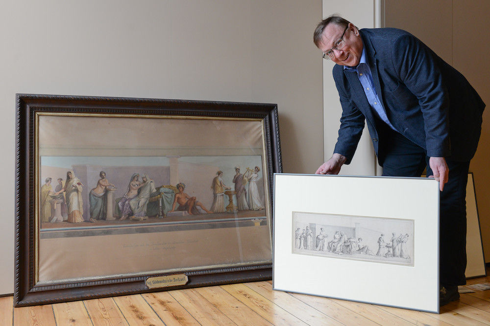 Lehmann begann zu recherchieren und konnte es anfangs selbst kaum glauben: Besagter Klebeband enthielt in der Tat spätbarocke Originalzeichnungen antiker Wandmalereien aus Rom. Sie stammen von dem italienischen Maler Camillo Paderni. Und sie sind die Originalvorlagen für Illustrationen eines 1740 in London erschienenen Buchs des schottischen Philosophen George Turnbull über die Geschichte der antiken Malerei. Dieses Buch wiederum nutze auch der Begründer der Klassischen Archäologie und Kunstgeschichte, Johann Joachim Winckelmann, als Quelle. Seine intensive Auseinandersetzung mit Turnbulls Werk ist durch eine Exzerpt dokumentiert, das sich heute im Besitz der französischen Nationalbibliothek befindet.