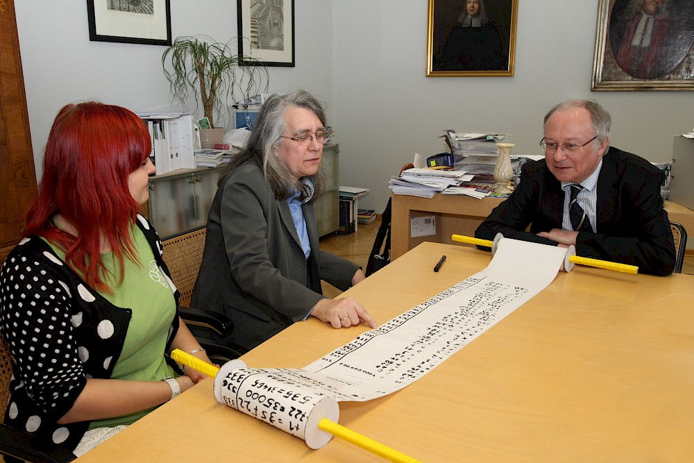 Jeder ist eingeladen, sich an der Rechenaufgabe zu beteiligen. Zum Beispiel in der Experimente-Werkstatt in der Mansfelder Straße 15, werktags und sonnabends von 10 bis 16 Uhr, mittwochs bis 17 Uhr. Auch in der Stadt ist Sarah Haller immer wieder mit der langen Rechnung unterwegs. Online kann man nachverfolgen, wie die Aufgabe wächst. Was nach Rechnungsschluss einmal mit ihr passieren soll, steht bereits fest. „Wir werden sie als Wandfries in der Werkstatt aufhängen“, kündigt Karin Richter an.