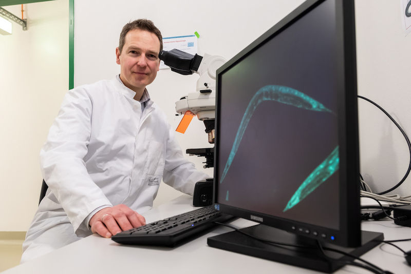 Letztlich gehe es bei Ernährungsforschung immer auch um den Verbraucherschutz. Auch hier sind die Arbeiten im Rahmen von „nutriCARD“ zum Vitamin D ein gutes Beispiel. Denn um die Versorgung der Bevölkerung mit Vitamin D zu verbessern, hat die europäische Behörde für Lebensmittelsicherheit kürzlich die UV-Bestrahlung von Hefe zugelassen. „Doch bei diesem Vorgang entstehen außer Vitamin D auch Moleküle, deren Wirkungsweise bisher nicht bekannt ist. Das ist eine Sicherheitslücke“, sagt Prof. Dr. Wim Wätjen, seit 2012 ebenfalls Professor am Institut für Ernährungswissenschaften. Als Chemiker und Toxikologe untersucht er die bei der Bestrahlung entstehenden Fotoisomere und beurteilt anschließend ihre Sicherheit für die Verbraucher. Dabei nutzt er winzige Fadenwürmer namens Caenorhabditis elegans. Mit Hilfe dieser nur etwa einen Millimeter langen Modell-Organismen lassen sich derartige Stoffwechselvorgänge untersuchen und damit auch Rückschlüsse auf den Menschen ziehen.