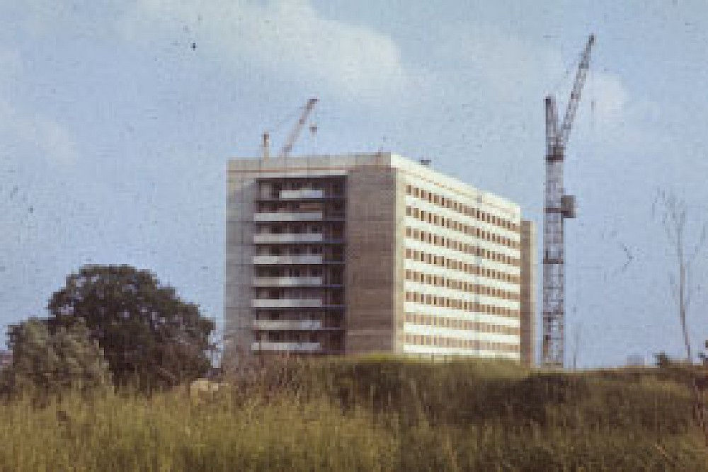 Dort, wo man sich heute in dem Gebilde aus Funktionsgebäuden, Bettenhäusern und Komplement schon mal verlaufen kann, steht 1974 nur ein einsamer Neubau auf einem Feld. In diesem Bettenhaus 1 will Christel Fiebig, damals 16 Jahre jung, ihre Ausbildung machen. „Ich hatte die Wahl zwischen dem Krankenhaus in Bad Frankenhausen oder dem neuen Klinikum in Halle-Neustadt, das vor allem für die Arbeiter in Buna und Leuna gebaut wurde. Da wollte ich hin!“ Mit 59 anderen Krankenschwester-Schülerinnen beginnt sie zum 1. September 1974 ihre Ausbildung in Kröllwitz. Fünf davon arbeiten noch heute, 40 Jahre später, am selben Standort. Das Bettenhaus 1 ist für sie damals Arbeits- und Wohnstätte zugleich. „Wir wohnten in der zehnten Etage und schliefen in Klinikbetten. Alle vier Wochen, wenn es zur Fachschule nach Weißenfels ging, mussten wir unsere Zimmer räumen“, erinnert sich die Hygienefachschwester in ihrem Büro, von dem sie auf das Bettenhaus blicken kann. „Hier draußen gab es damals nichts. Darum haben wir sogar in unserer Freizeit oft in der Klinik geholfen, Essen verteilt und Ähnliches.“ Mindestens fünf Tage in der Woche verbringt sie als Auszubildende im „Versorgungskrankenhaus Halle-Neustadt“. 160 Mark gibt es dafür monatlich. An freien Tagen fährt sie am liebsten mit dem Bus zur Familie nach Wiehe im Kyffhäuserkreis.