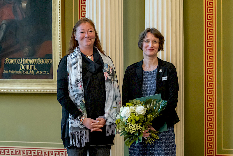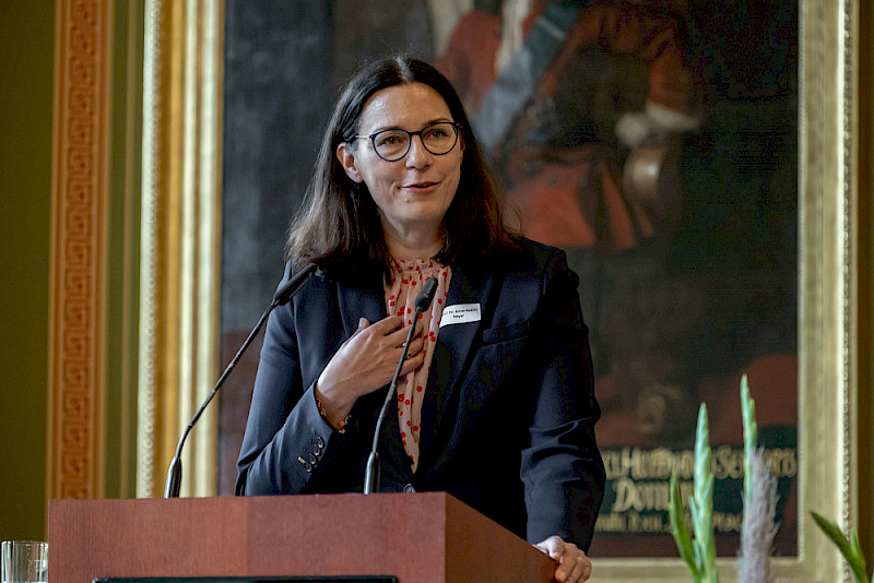 Die Rektorin wählte auch ernste Worte in ihrer Ansprache, denn die MLU stehe immerhin vor zahlreichen Herausforderungen: Ziel sei es daher, im Rahmen der im kommenden Jahr anstehenden Verhandlungen zur nächsten Zielvereinbarung mit dem Land ein gutes Arrangement zu erreichen. „Dazu wollen wir sichtbar demonstrieren, was unsere Universität leistet und wo wir die Potenziale für die Zukunft sehen.“ Wichtig sei es, eine gute Balance zu finden und „ein Profil zu entwickeln, das gut sichtbar macht, wofür wir stehen und in der näheren Zukunft stehen wollen, und dabei die Idee von Universitas nicht zu verlieren.“