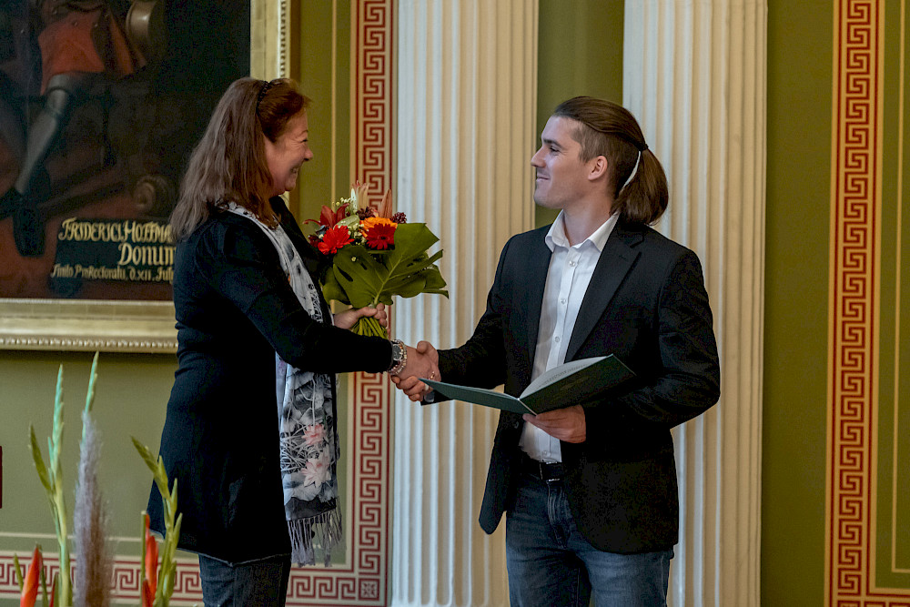 Rektorin Prof. Dr. Claudia Becker brachte es am Freitagnachmittag 14 Uhr in der gefüllten Aula bei der feierlichen Übergabe der Urkunden auf den Punkt: „Ausweis der Leistungen einer Universität ist unbestritten das Promotions- und Habilitationsgeschehen. In den letzten 15 Monaten wurden in unseren neun Fakultäten insgesamt 447 Promotionen und 14 Habilitationen abgeschlossen.“ Übergeben wurden in der Feierstunde aber nicht nur ein großer Teil jener Promotions- und Habilitationsurkunden, sondern auch die Luther-Urkunden an die Promovenden, die mit summa cum laude abgeschlossen haben, und die Universitätspreise. Den Festvortrag hielt Prof. Dr. Anne-Katrin Neyer, Lehrstuhlinhaberin für Personalwirtschaft und Business Governance an der MLU sowie Professorin des Jahres 2022, zum Thema „Lernen, Forschen, Arbeiten: Gemeinsam wachsen mit Künstlicher Intelligenz“.
