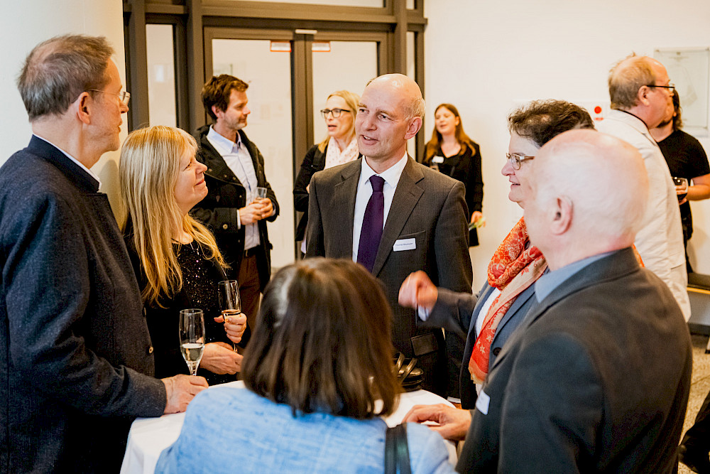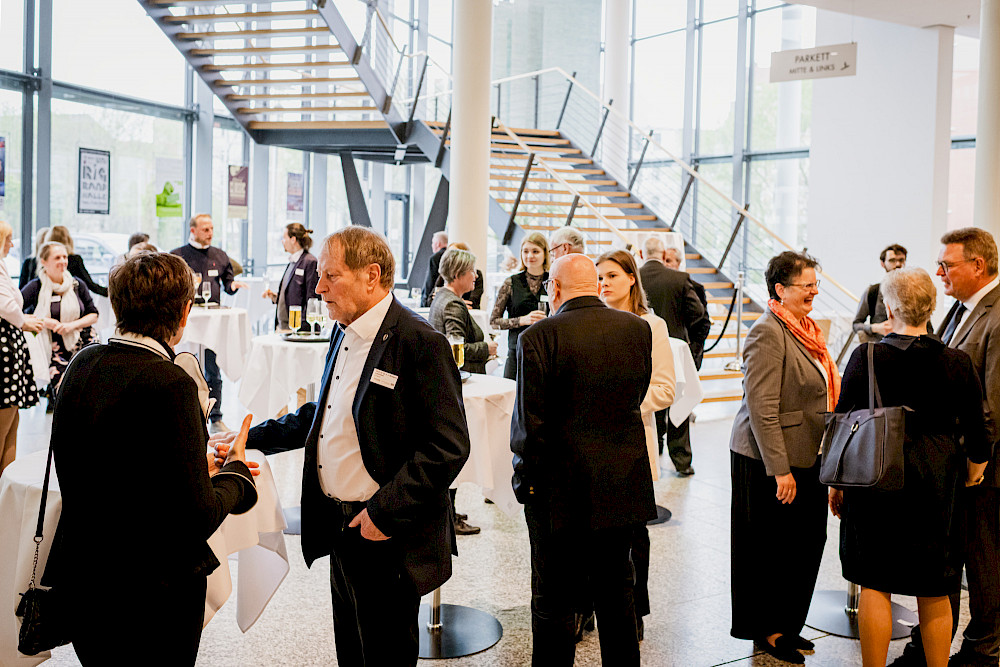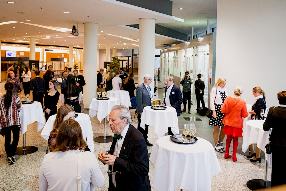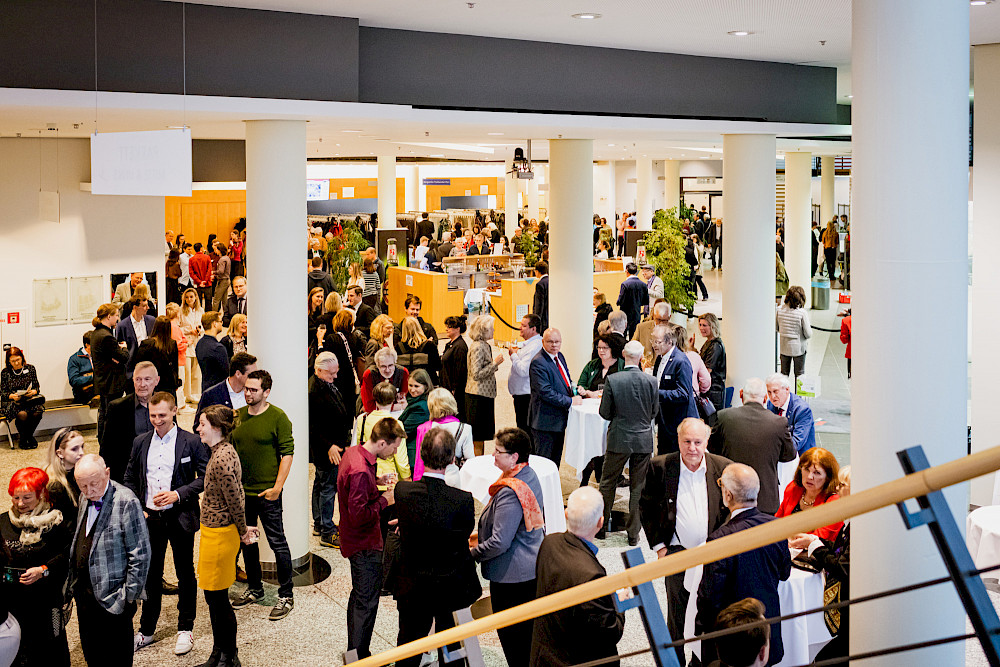 Weiter ging es ab 17 Uhr mit einem Netzwerktreffen der Deutschlandstipendiatinnen und – stipendiaten mit ihren Förderern aus der Wirtschaft und von zahlreichen Institutionen in der Händel-Halle. Diese gesellige Runde ging ab 18 Uhr in den größeren und launig-lockeren Jahresempfang der MLU und ihres Freundeskreises über. Begrüßt werden konnte dort unter anderen Kanzler Alfred Funk an seinem allerersten Arbeitstag an der MLU.