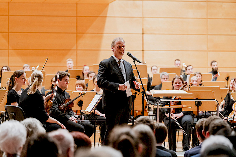 Nicht zu wenig versprach zu Beginn des Konzerts auch Jens Lorenz, Leiter des Collegium musicum, als er darauf hinwies, dass an diesem Abend das ein oder andere musikalische Feuerwerk gezündet werden würde. Und in der Tat: Die drei Ensembles der Universität, Akademisches Orchester, Universitätschor und Uni-Bigband, übertrafen sich in ihren Darbietungen und erhielten durchgängig frenetischen Beifall. Unter den Konzertbesuchern, die ihre Karten alle kostenlos erhalten hatten, wurden auch Spenden gesammelt. Insgesamt kamen 2.019,40 Euro zusammen – sie sollen an die Opfer des verheerenden Erdbebens in Syrien und in der Türkei gehen.