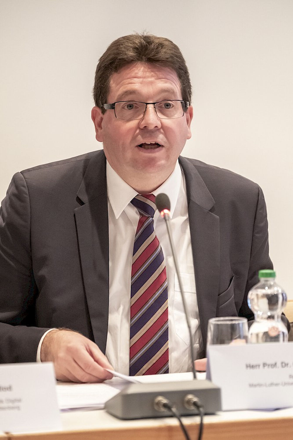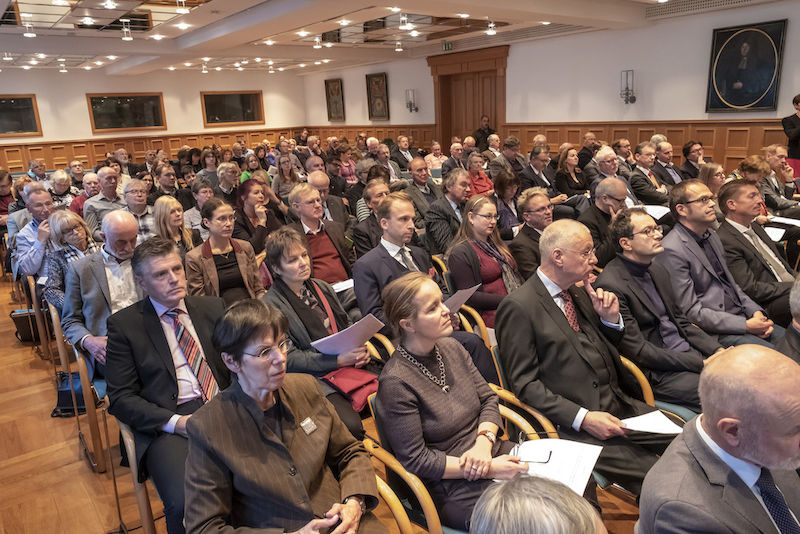 Mit einer Würdigung des am 12. Oktober verstorbenen Politologen Prof. Dr. Hans-Hermann Hartwich begrüßte Prof. Dr. Ernst-Joachim Waschke, Vorsitzender der Stiftung Leucorea, die Gäste der Disputation – eine Veranstaltung, die die hallesche Universität dem ehemaligen Gründungsdekan und Prorektor für Entwicklungsplanung und Strukturreform verdankt. „Er hat viel für die Stiftung Leucorea getan. Sie wird sein Andenken in Ehren halten“, sagte Waschke. Die Disputation widme sich auch in diesem Jahr nicht nur einem „aktuellen, sondern auch einem schwierigen und problematischen Thema“. Die Digitalisierung werde die Welt vielleicht noch viel stärker verändern, als dies zu Luthers und Melanchthons Zeiten der Buchdruck tat, vermutete er.