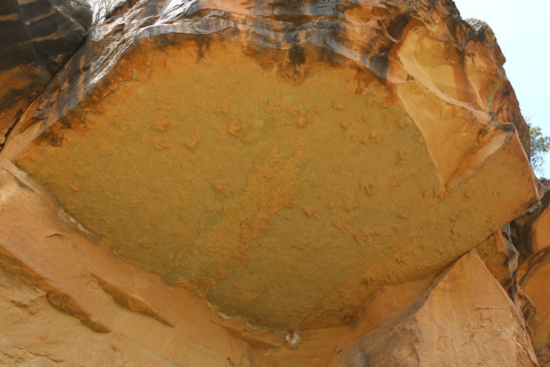 Im Januar 2016 reiste Oliver Wings nach Lesotho, um die Fußabdrücke der Dinosaurier am Felsen zu dokumentieren. Das war gar nicht so einfach, denn der Forscher musste sich etwa eine Stunde vom Auto aus über Ziegenpfade zur Felsformation durchschlagen. Die Spuren erwarteten ihn schließlich in luftiger Höhe auf der Felswand über ihm. „Die überhängende Felswand ist mit Spuren von zweibeinigen Raubdinosauriern übersät. Außerdem fanden wir im Unterholz etwa 150 Meter unterhalb am Felshang einen Felsblock mit stärker verwitterten Spuren“, sagt Wings. Der Felsblock sei vermutlich vor mehreren hundert Jahren von der oberen Wand abgebrochen, fährt er fort. An der oberen Wand zählten die Forscher 85 Spuren von verschiedenen Dinosauriergruppen, 110 weitere Fußabdrücke sind auf dem abgestürzten Felsblock zu sehen.