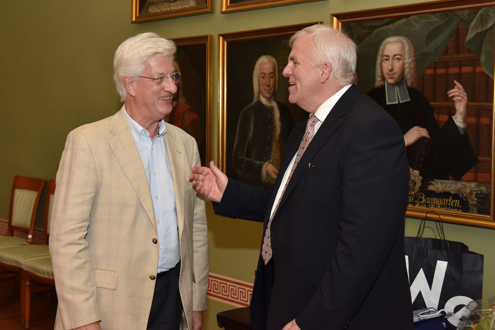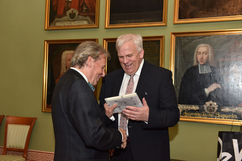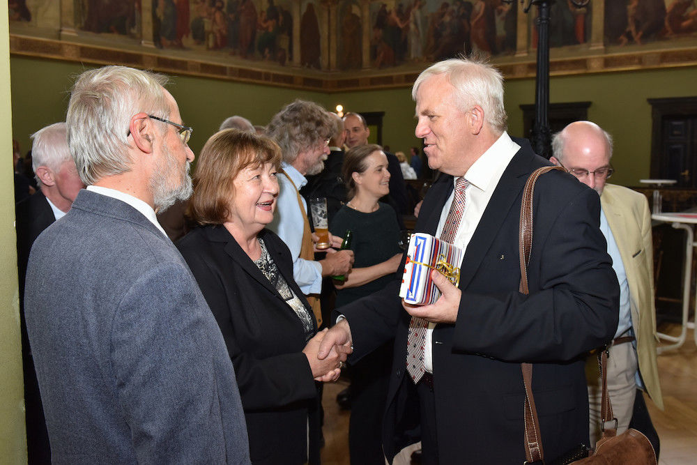 „Von was wollen Sie eigentlich Abschied nehmen?“, fragte nun Akademie-Präsident Prof. Dr. Hans Wiesmeth in der voll besetzten Aula im Kreis vieler nationaler wie internationaler Gäste der Abschiedsvorlesung. Vom akademischen Leben insgesamt? Das wäre nicht nur unvorstellbar, sondern mit den Worten eines Volkswirts formuliert – Wiesmeth ist Wirtschaftswissenschaftler – auch eine „Verschwendung von Humankapital“. Nun, so viel ist klar: Die wird es nicht geben. Lück wird zwar mit seinem Ruhestand nicht mehr in die Lehre involviert sein. In die Forschung, kündigte er aber bereits an, will er sich dafür noch stärker einbringen als bisher. „Ich werde auch Stammkunde im Universitätsarchiv bleiben, wie ich es schon seit 1978 gewesen bin“, sagte er. Die Universitätsgeschichte von Wittenberg bleibt eines seiner großen Themen. Aktiv widmen will sich Lück zudem vor allem den beiden laufenden Langzeitprojekten an der Sächsischen Akademie der Wissenschaften. Ein drittes zum sächsischen Weichbild (Magdeburger Stadtrecht) bringt er gerade mit auf den Weg. Falls also jemand fragen sollte „Was macht der eigentlich?“, lautet die Antwort: Immer noch einiges.