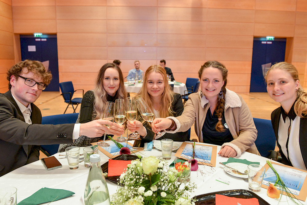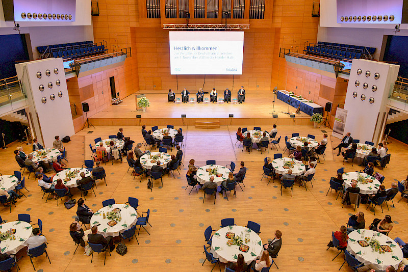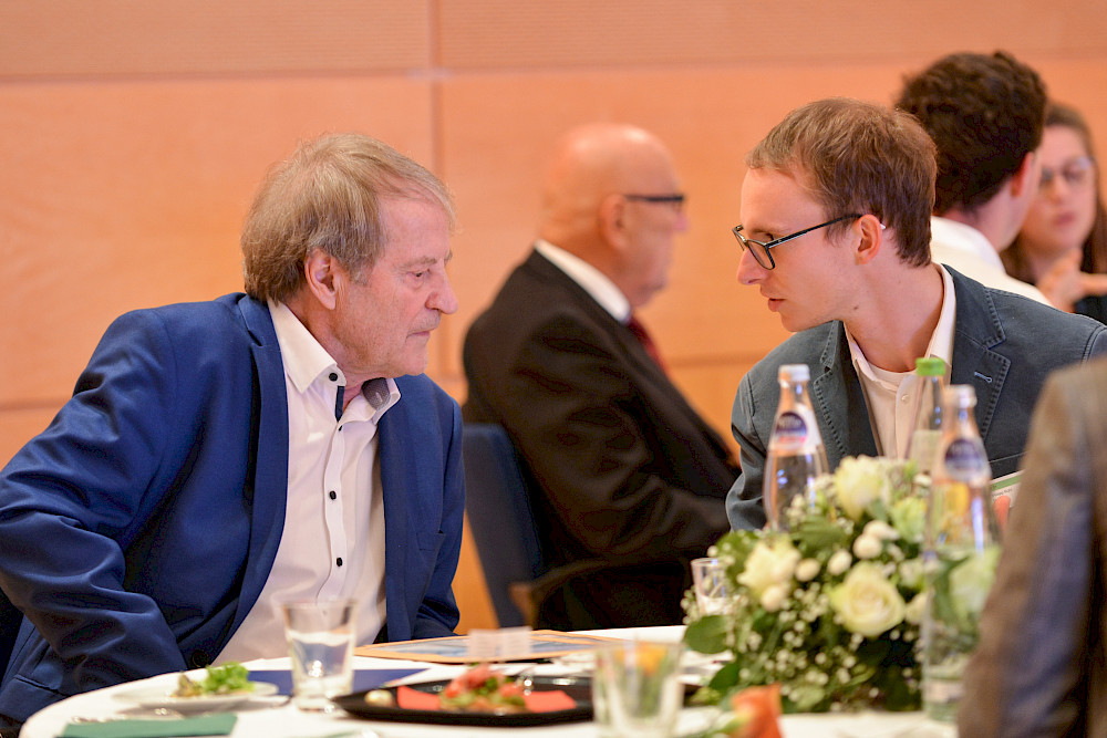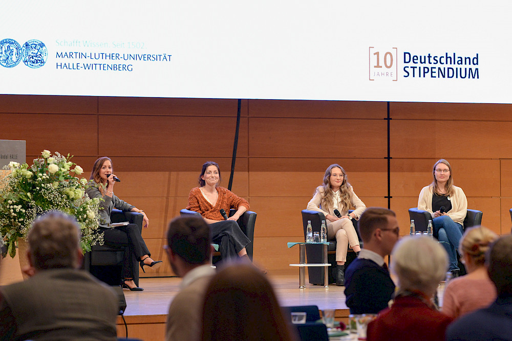 Mehrere Talkrunden wurden während der Veranstaltung dafür genutzt, aktuelle Förderer und Studierende vorzustellen sowie in Gesprächen mit Ehemaligen die vergangenen zehn Jahre Revue passieren zu lassen. Immer wieder kam dabei auch zur Sprache, wie die Studierenden von der finanziellen Unterstützung und den Kontakten zu ihren Förderern profitieren, was die Stifterinnen und Stifter motiviert. Seit 2019 gehört auch das hallesche E-Commerce-Unternehmen Relaxdays zu den Unterstützern. 2006 gegründet, habe es heute 500 Mitarbeiterinnen und Mitarbeiter, so Unternehmenssprecherin Laura Zöller. „Das alles funktioniert nur mit sehr viel Engagement und mit sehr viel Herzblut – und das finden wir vor allem bei Hochschulabsolventen.“ Deshalb sei der Schritt logisch gewesen, Studierende zu unterstützen. Zöller, selbst einst Deutschlandstipendiatin, warb für einen frühzeitigen Kontakt in die Praxis. Im Anschluss an den offiziellen Teil der Übergabeveranstaltung hatten beide Seiten – Fördernde und Geförderte – Gelegenheit zu dem Part, der ein wichtiger Teil des Deutschlandstipendien-Programms ist: das gegenseitige Kennenlernen und Netzwerken.