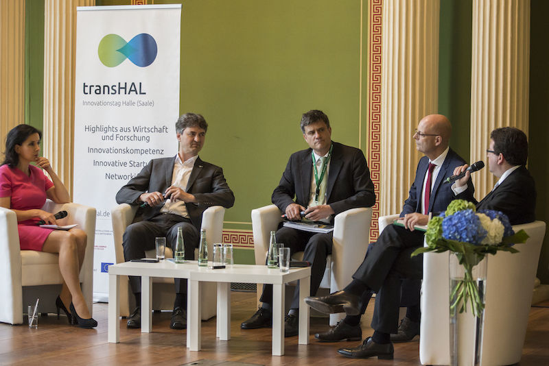 In einer Podiumsdiskussion ging es zwischen vielen weiteren Programmpunkten des Tages einmal mehr um die durch den beschlossenen Kohleausstieg notwendige Gestaltung des Strukturwandels für Halle und die Region. Es diskutierten Rektor Prof. Dr. Christian Tietje und Oberbürgermeister Dr. Bernd Wiegand mit PD Dr. Mirko Titze vom Leibnitz-Institut für Wirtschaftsforschung Halle und dem Geschäftsführer der Stadtwerke Halle GmbH Matthias Lux.