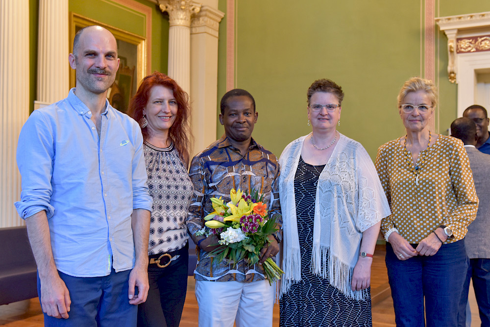 Dr. Kokou Azamede, Grimm-Preisträger des DAAD, Historiker und Germanist von der Universität Lomé in Togo, brachte in der sich anschließenden Diskussion weitere Aspekte ein. Das Buch sei auf großes Interesse in Togo gestoßen, weil es sich mit Kolonialgeschichte beschäftige, ein in Deutschland im Schatten stehendes Thema. Auch wenn es sich nicht explizit mit Togo, einer ehemaligen deutschen Kolonie, befasse.