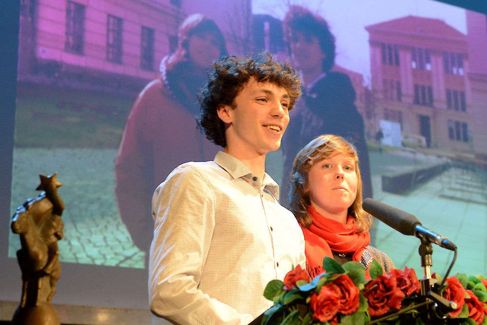 Am Sonnabend, 22. März, erhielten Geschonneck und Wagner für ihr großes Engagement den Bürgerpreis „Der Esel, der auf Rosen geht“ - gestiftet von der Mitteldeutschen Zeitung, der Stiftung der Saalesparkasse und dem neuen theater. „Den Preis haben wir in Vertretung des Bündnisses entgegen genommen“, sagt Clemens Wagner. Die Freude über die Anerkennung sei groß. „Das war aber eine Kärrnerarbeit für viele“, so Wagner. Allein hätte man das alles nicht organisieren und auf die Beine stellen können. Die Laudatio auf die beiden Studierenden hielt Prorektorin Prof. Dr. Gesine Foljanty-Jost.