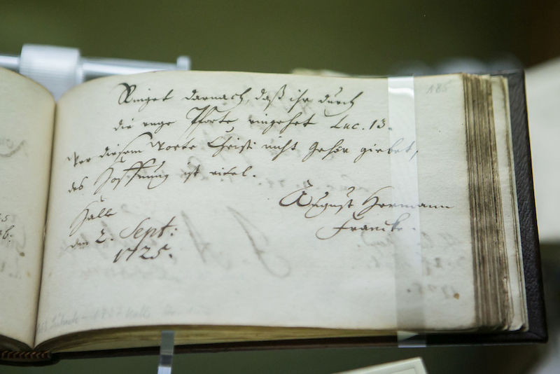 Verewigt haben sich Kommilitonen und auch der Lehrkörper. So finden sich in der Sammlung der ULB auch Raritäten wie die Einträge berühmter hallescher Universitätsprofessoren, unter ihnen Christian Thomasius, Christian Wolff und August Hermann Francke. Zumeist sind es Sinnsprüche, die die Gelehrten hinterlassen. So schrieb Francke 1725 in das Stammbuch des Studenten Johann Hattermann: „Ringet danach, dass ihr durch die enge Pforte eingehet.“