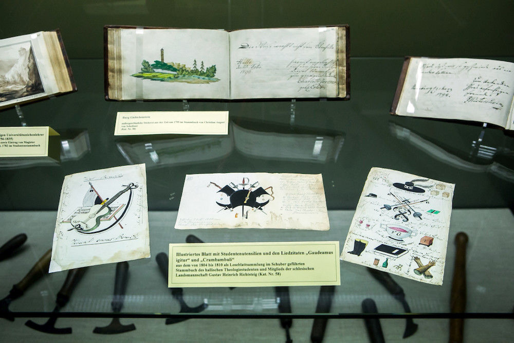 Die Ausstellung unter dem Titel „Nicht zum Fressen, nicht zum Saufen, sondern Weisheit einzukaufen… Hallische Universitätsgeschichte in Stammbücher“ ist noch bis zum 14. Januar im Technischen Halloren- und Salinemuseum, Mansfelder Straße 52, zu sehen.