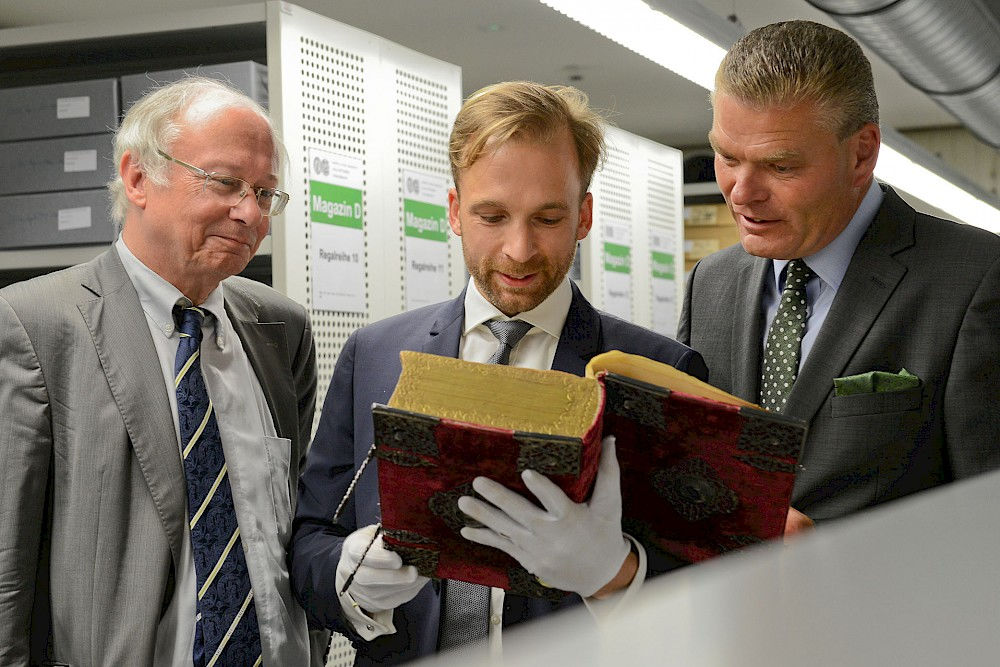 In seinem Grußwort machte Innenminister Stahlknecht die Bedeutung des Archivs mit einem Zitat des Dichters Novalis deutlich: „Schriften sind die Gedanken des Staats, die Archive sein Gedächtnis“. Mit den neuen Räumlichkeiten habe die Universität eines der schönsten und modernsten Gedächtnisse erhalten, so der Minister.