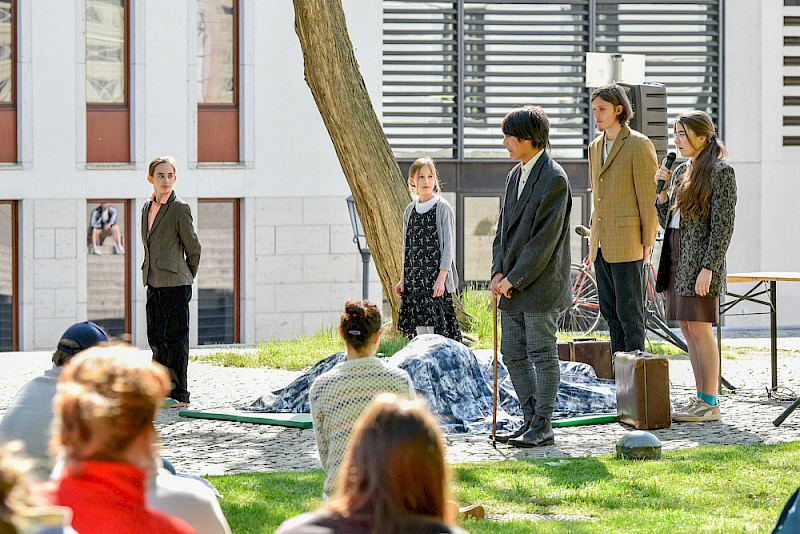 Fast 140 Autorinnen und Autoren standen 1933 auf dem sogenannten „Halleschen Generalindex“, in dem die zu verbrennenden Bücher aufgelistet wurden. Darunter waren Erich Kästner, Else Lasker-Schüler, Bertolt Brecht, Irmgard Keun und Kurt Tucholsky. Ihnen widmeten Schülerinnen und Schüler der Theater-AG des Georg-Cantor-Gymnasiums während der Gedenkveranstaltung eine szenische Lesung auf dem Universitätsplatz. Zitiert wurde in einem weiteren Beitrag auch die in der vergangenen Woche verstorbene Holocaust-Überlebende Margot Friedländer: „Seid Menschen. Wir sind alle gleich.“
