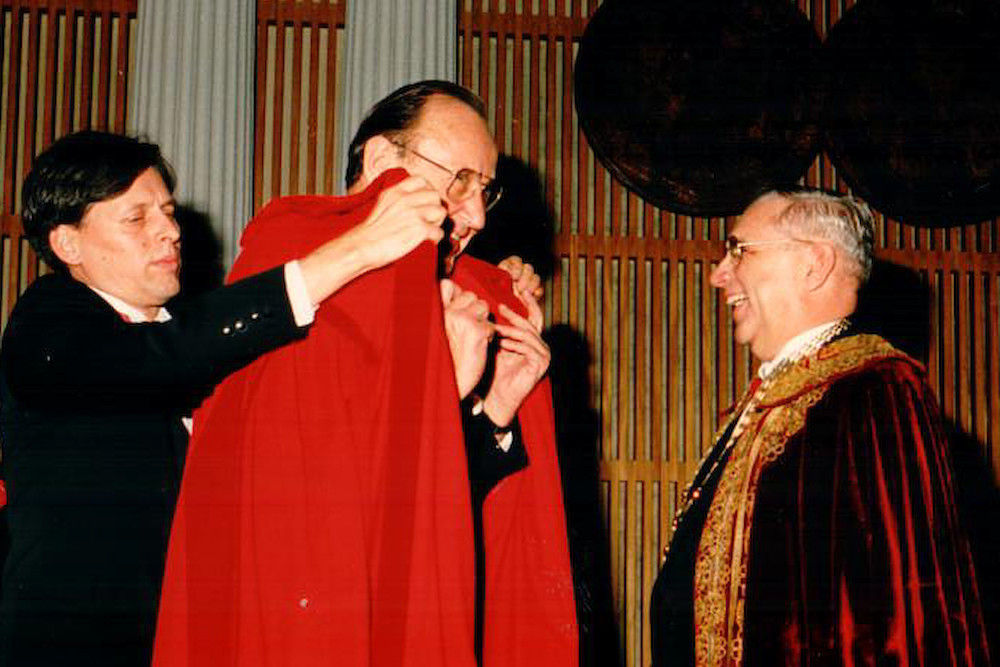 Ich denke, es war allen Akteuren jener Zeit klar, was Genscher für uns getan hat. Nicht zuletzt deshalb ist ihm 1992 die Ehrensenatorwürde verliehen worden. Eine Auszeichnung, die bisher nur wenige Persönlichkeiten erhalten haben, so etwa Halles ehemaliger Bürgermeister Richard Robert Rive, der Bankier Heinrich Lehmann oder auch die Schwedin Elsa Brändström. Und Genscher hat sich damals sehr darüber gefreut. Er fand auch die Talare gut, die wir zu besonderen Anlässen wieder trugen. Vor der Verleihung kam er deshalb sogar zu einer Anprobe des für ihn bestimmten Talars an die Universität. Sie fand im Dienstzimmer des Rektors statt.