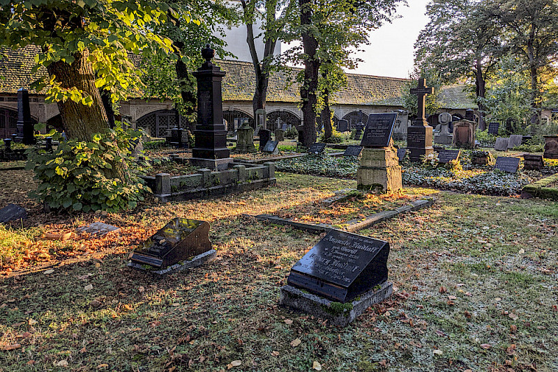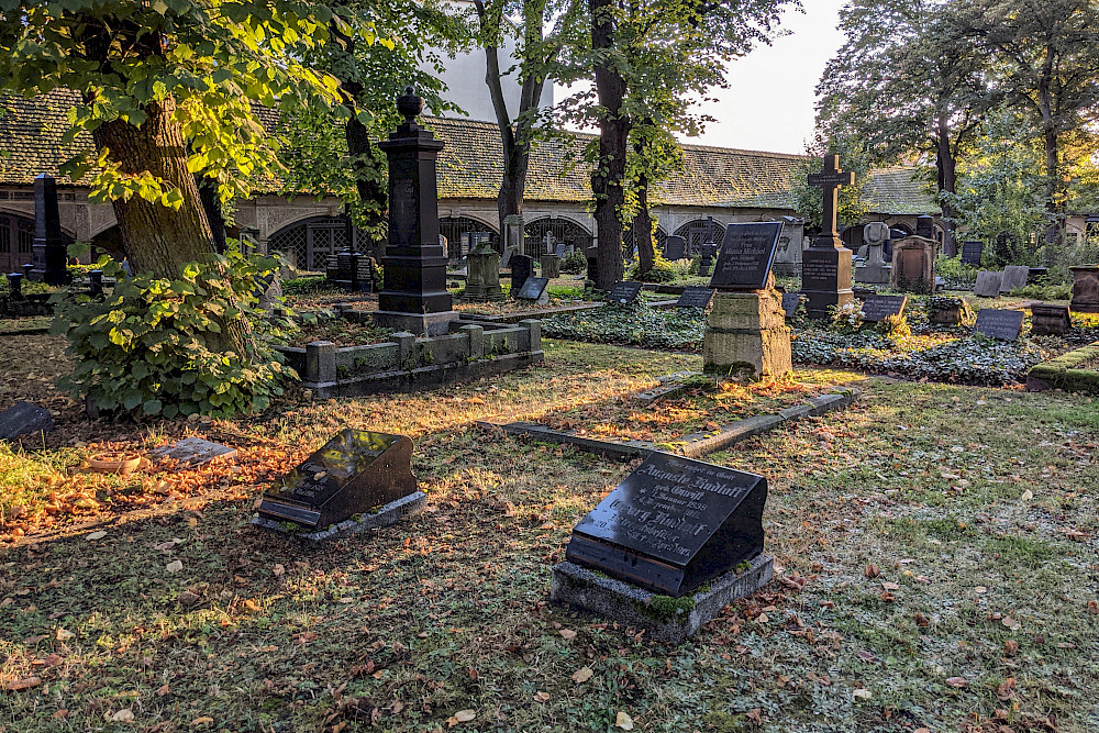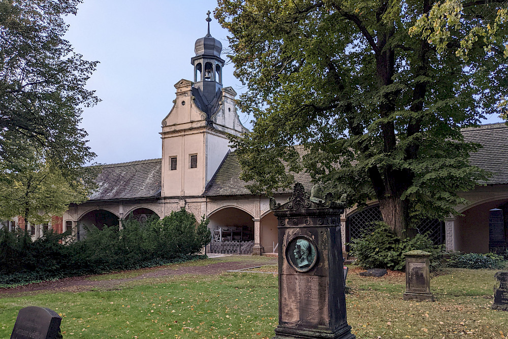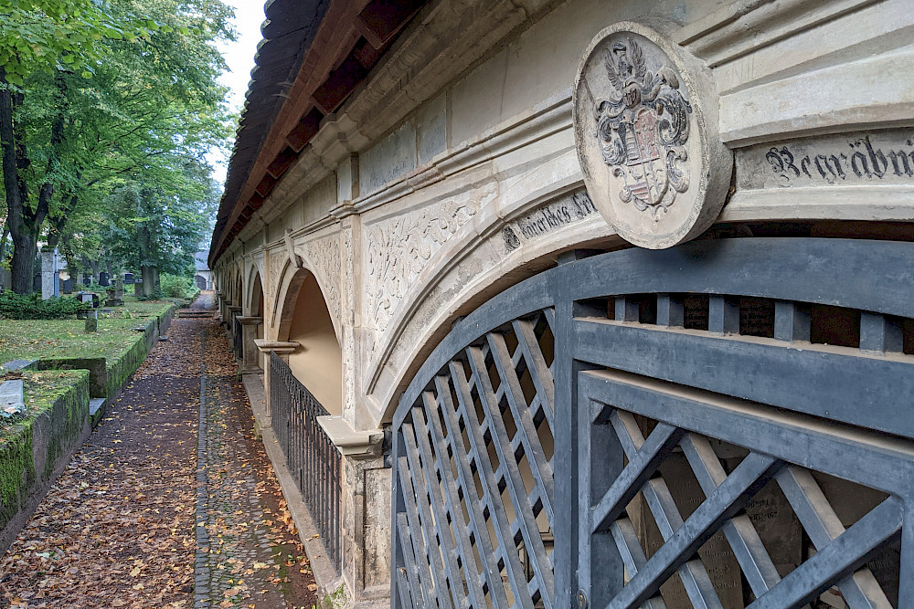 Der berühmte Stadtchronist Gottfried Olearius, die Eltern des Mediziners Friedrich Hoffmann, die Vorfahren Georg Friedrich Händels – sie alle sind auf dem Stadtgottesacker begraben. Hier ruht seit dem 16. Jahrhundert die hallesche Oberschicht: Ratsherren, Bürgermeister, Schöffen, Juristen, Mediziner und hochgestellte Theologen. Reiche Familien finanzierten ab 1529 den Bau des Friedhofs mit seinen mehr als 90 Schwibbögen, unter denen die eigentlichen Grüfte liegen. „Der Stadtgottesacker ist einmalig in Europa“, sagt Prof. Dr. Klaus Krüger. Die Anlage wurde nach dem Vorbild eines italienischen Camposanto errichtet. Dabei handelt es sich um eine hofartig umschlossene Anlage mit nach innen offenen Bogengängen. Zwar wurden im 16. Jahrhundert einige solcher Friedhöfe in Mitteldeutschland angelegt – etwa in Leipzig, Altenburg und Eisleben. In Gänze erhalten ist jedoch nördlich der Alpen nur noch der Gottesacker in Halle. „Heute gilt er als Prototyp eines protestantischen Friedhofs“, sagt Krüger.