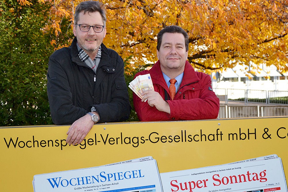 So ließen es sich Ingo Krause und Markus Leber auch nicht nehmen, am vergangenen Freitag pünktlich zur Geschäftsstelle des Wochenspiegels zu fahren und den Gewinn persönlich entgegenzunehmen.