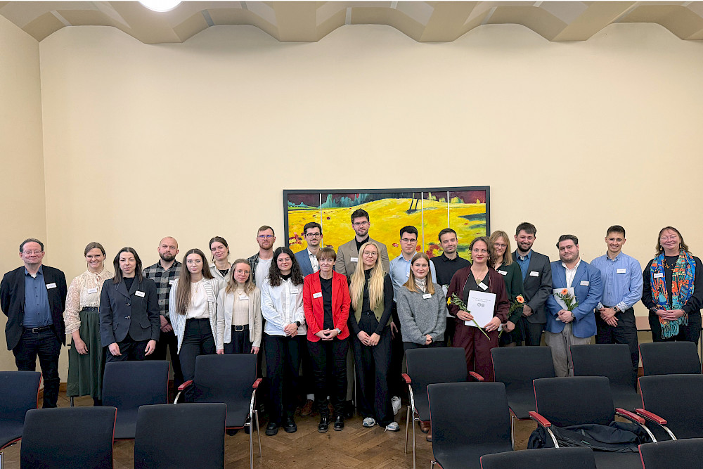Die Hürden, um in das Landesgraduiertenprogramm aufgenommen zu werden, sind hoch: neben herausragenden Prüfungsleistungen zählt zum Beispiel ein herausragendes Forschungsthema zu den Kriterien für die Auswahl. Das Programm ist gefragt: Allein seit 2020 wurden an der MLU 143 Landesgraduierten-Stipendien vergeben. Im Anschluss an die Urkundenübergabe und weiteren Informationen zur Promotion an der MLU stellten sich auch das „Netzwerk der Stipendiat:innen der Landesgraduiertenförderung Sachsen-Anhalt“ und die Promovierendenvertretung der MLU vor.