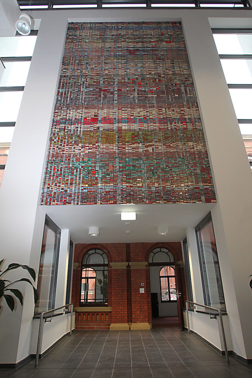 Das IBZ ist nicht nur ein Zuhause für ausländische Gastwissenschaftler der Uni Halle und der Leopoldina, es ist ein Ort der vielseitig genutzt wird, an dem sich Menschen begegnen und voneinander lernen. Franziska Friese und Robert Filipski zeigen das in ihrem Wandmosaik „Durchdringen“ und haben damit den hochschulinternen zweistufigen Wettbewerb an der Burg Giebichenstein für sich entschieden.