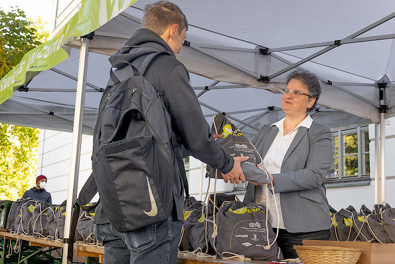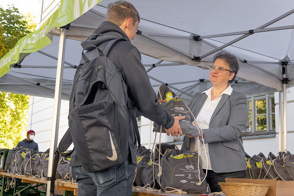 Es war nicht nur das Wetter, das passte. So viele Erstsemester wie im vergangenen Jahr haben sich an der Uni eingeschrieben, „das ist hoch erfreulich“, sagte Rektorin Claudia Becker beim Bad in der Menge. Während sie zur Immatrikulationsfeier auf dem Universitätsplatz bereits mit den ersten neuen Studierenden ins Gespräch kam und ihnen die begehrten Welcome Bags überreichte, füllte sich der Platz zusehends. Eine Begrüßung in Präsenz, „das fühlt sich gut an“, so die Rektorin.